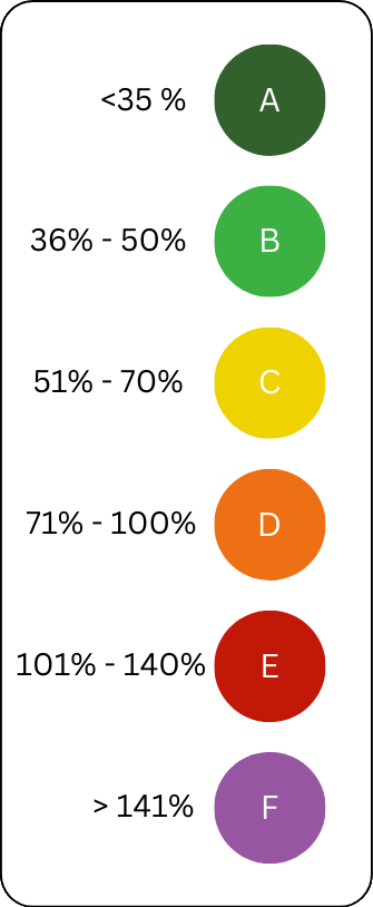 Die Bewertung hat dabei folgende Eckpunkte. Ist der Index größer als 100%, wird er als ungenügend (E) gewertet. Der Unterschied zwischen „Gut“ und „Befriedigend“ liegt bei 50% des Index.