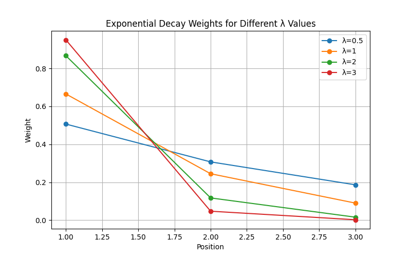 e^{-lambda * (i-1)} mit i = 1,2,3